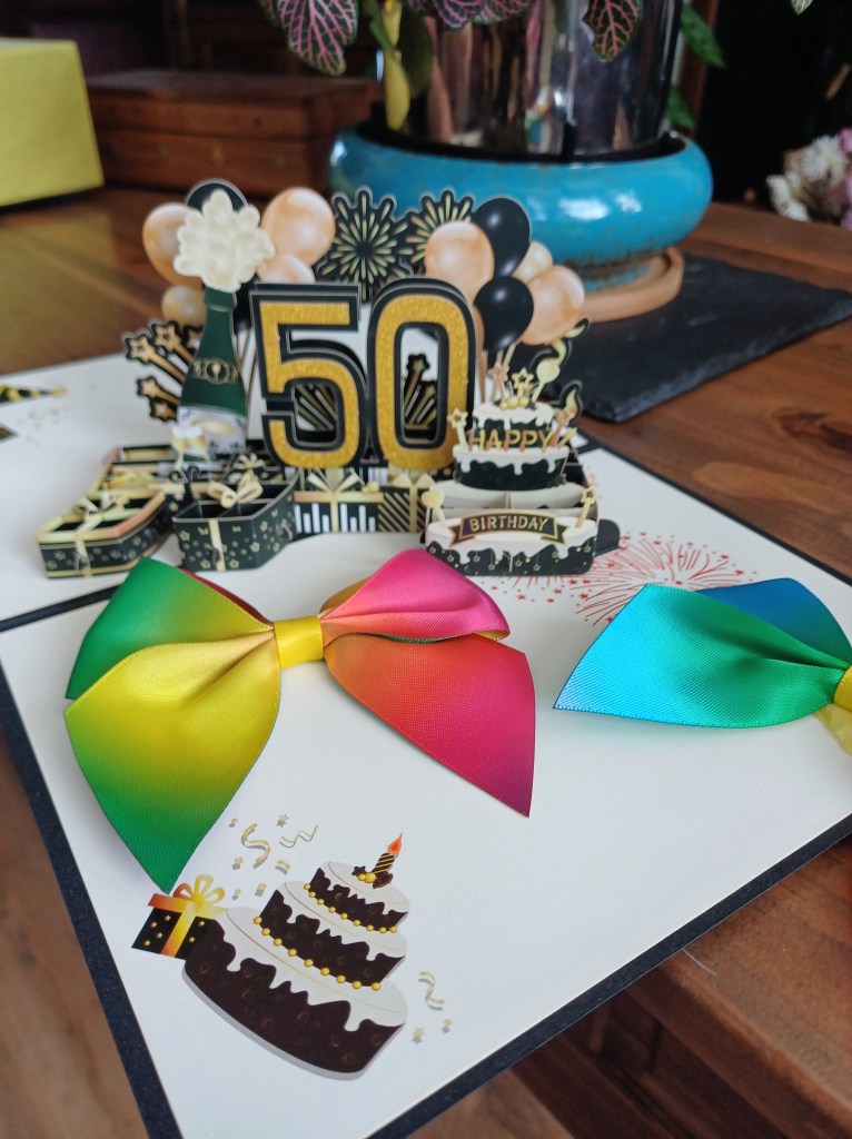 I put some photos up on Facebook of the day, including one of the pile presents. My commented on the photo that the presents were wrapped in the colours of the non-binary flag; this is the first time I’ve used that word in the public space – I wonder whether anybody will notice?