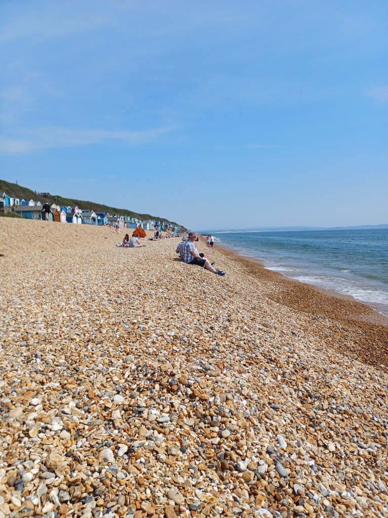 After our walk in Lymington we went to Milford beach where we lay in the sun with all afternoon and I went to the sea couple of times. The sound of the sea on the pebbles is very relaxing I could feel the rumblings in my core as the waves rolled onto the beach subterranean growl through my ear when I pressed it to the pebbles on the beach. I am a little bit pink where I’ve caught the sun.