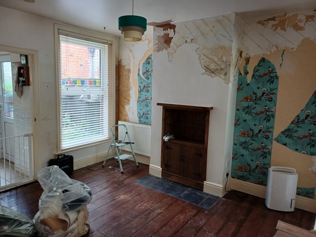 He did his own assessment, and then started stripping wallpaper and scoring the plaster to help it dry.
