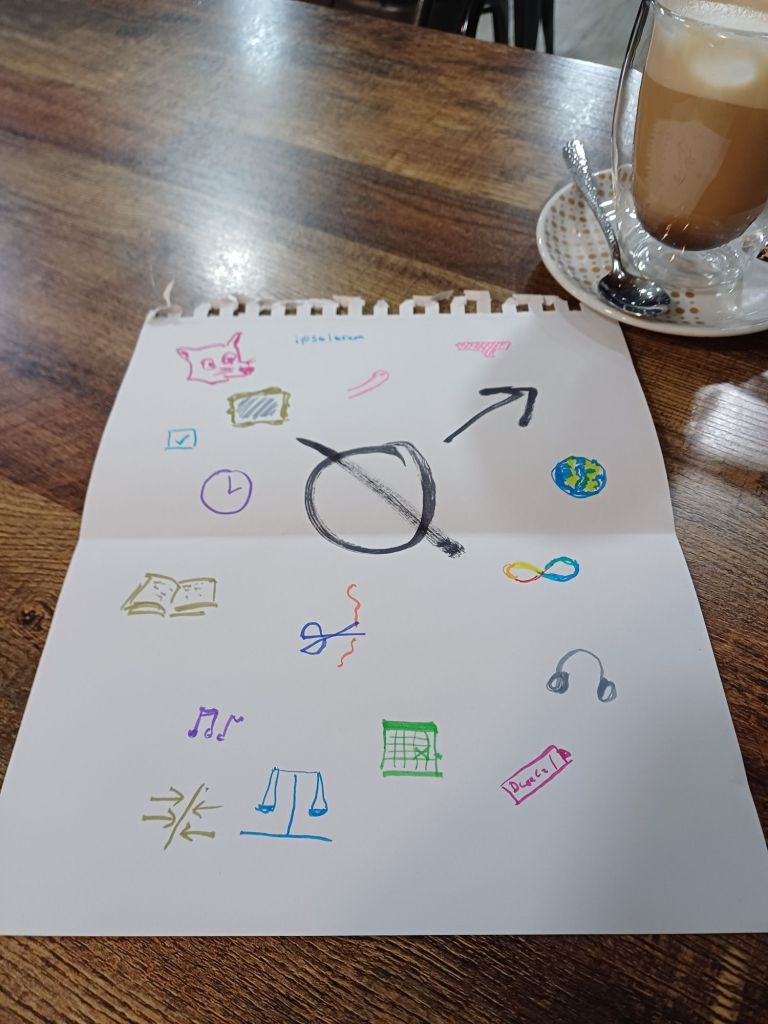 We both lay on the floor while he and I suggested things and I drew little symbols.