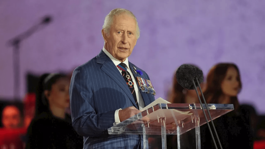 King Charles III speaking at the VE Day celebrations in London