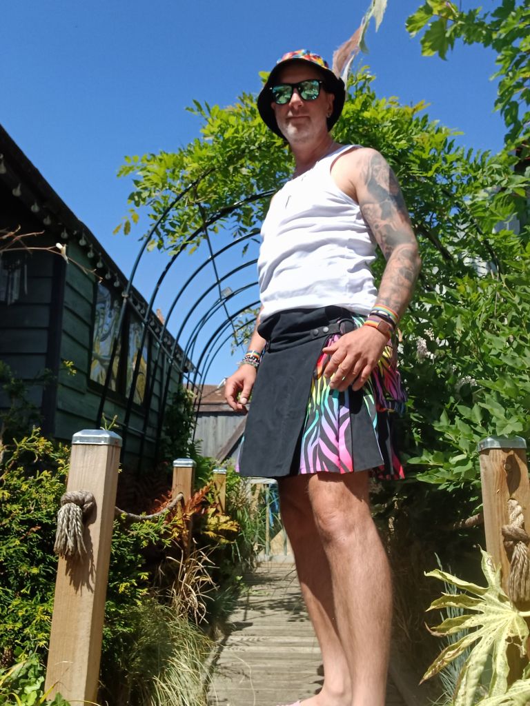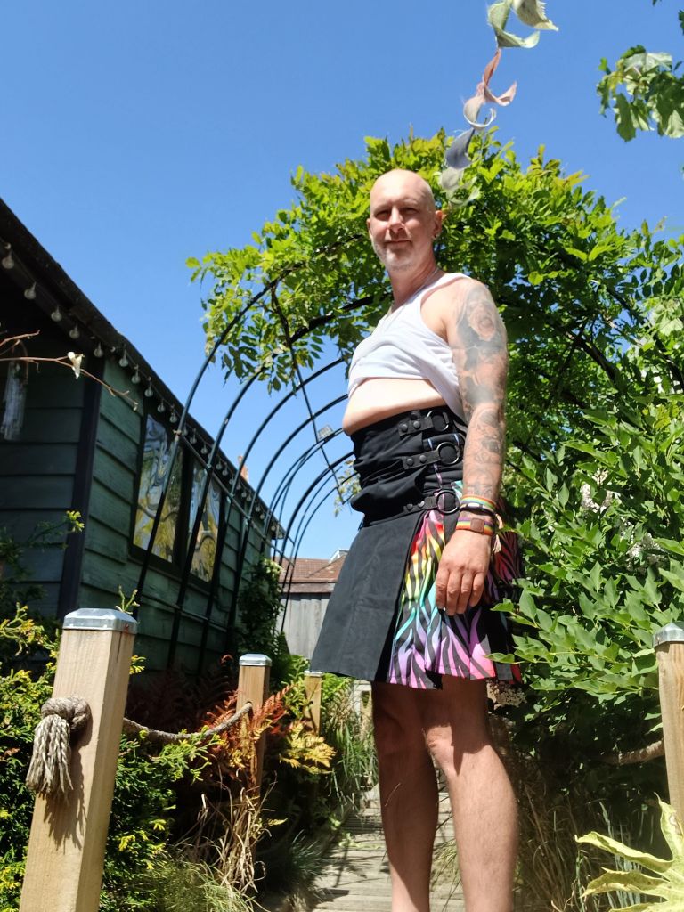 Just to nail the message to myself home, I had a delivery today off a kilt with rainbow pleats to wear to Pride. Now, if you’ve never worn a kilt – they are not garments that accept lies. They are tailored, precise, and completely unforgiving of any optimistic rounding down on waist measurements.