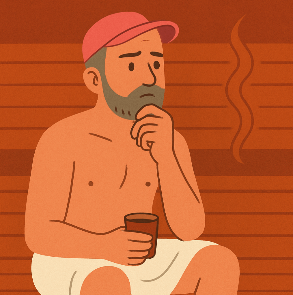 So I’m still going to the sauna, but I’m grounded. Steam only. No play, no flirtation, no drink — just coffee. Which feels a bit like going to a theme park and staying on the bench while everyone else rides the rollercoaster.