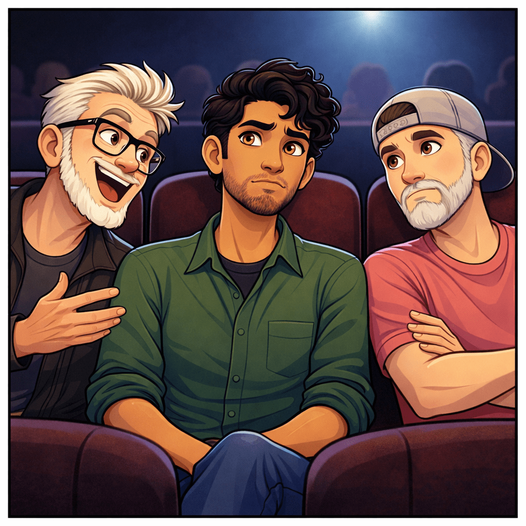 Friday night is movie night! And this Friday Ambrosius suggested “Sinners”… and that we invite Patricius. He’s not suggested going as a group since we saw “Pillion” in December when Ambrosius became convinced that Patricius and I were holding hands while watching the film and became horribly jealous. And that didn’t work out well for our friendships.
